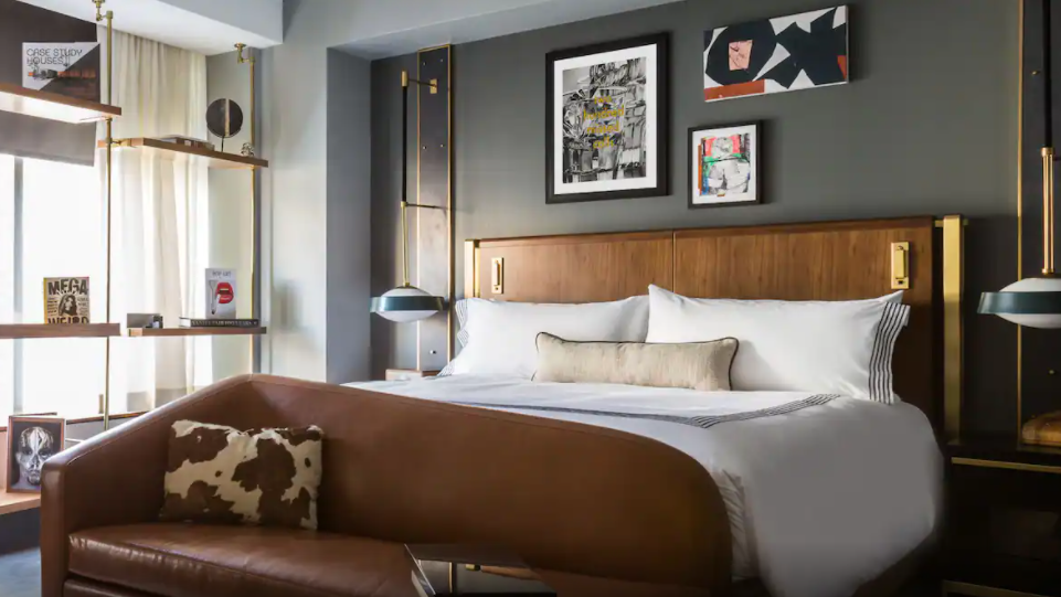 There are 219 rooms and 52 suites with floor-to-ceiling windows, mid-century modern design, bespoke furnishings, and stylish bathrooms. In my deluxe king, I enjoyed city views, hardwood and tile flooring, and a luxurious bed dressed in high-thread count linens. The bathroom included a well-lit vanity, large walk-in shower, and separate commode closet. For guests looking for a deep soaking tub, double square footage, a second bathroom, or a separate living room with fireplace, the portfolio of suites has it all.